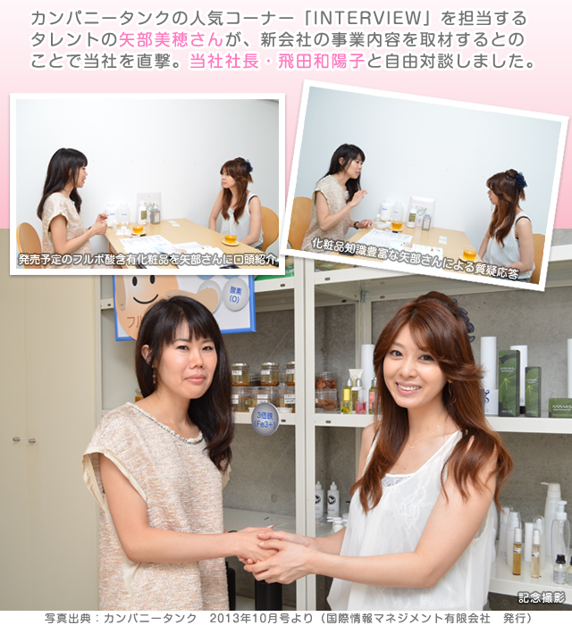 月刊誌「カンパニータンク」の取材で、タレントの「矢部美穂」さんが来社しました。